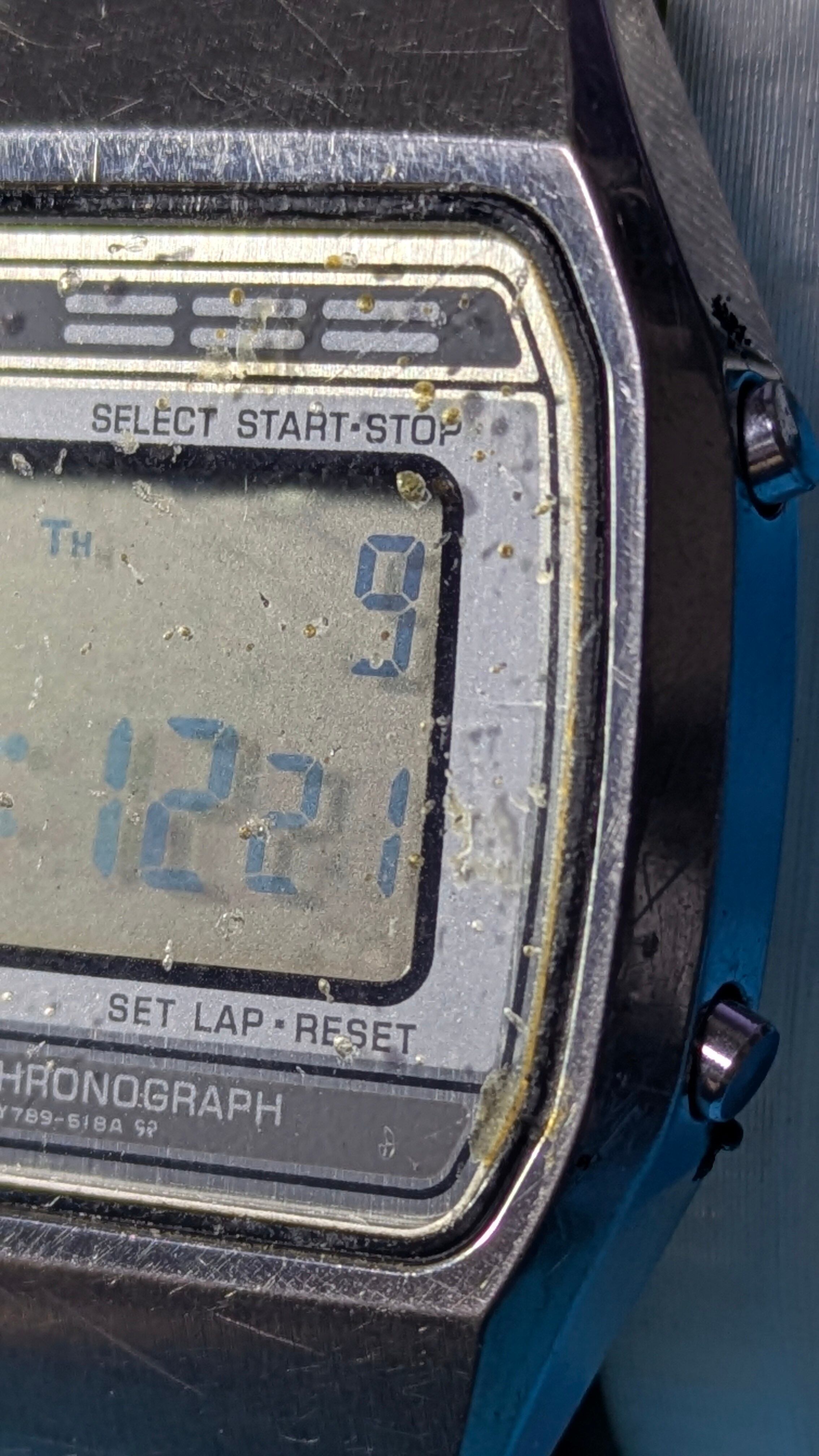 文字盤に Y789-518A と表記された、ヴィンテージの Seiko ALBA デジタルウォッチです。